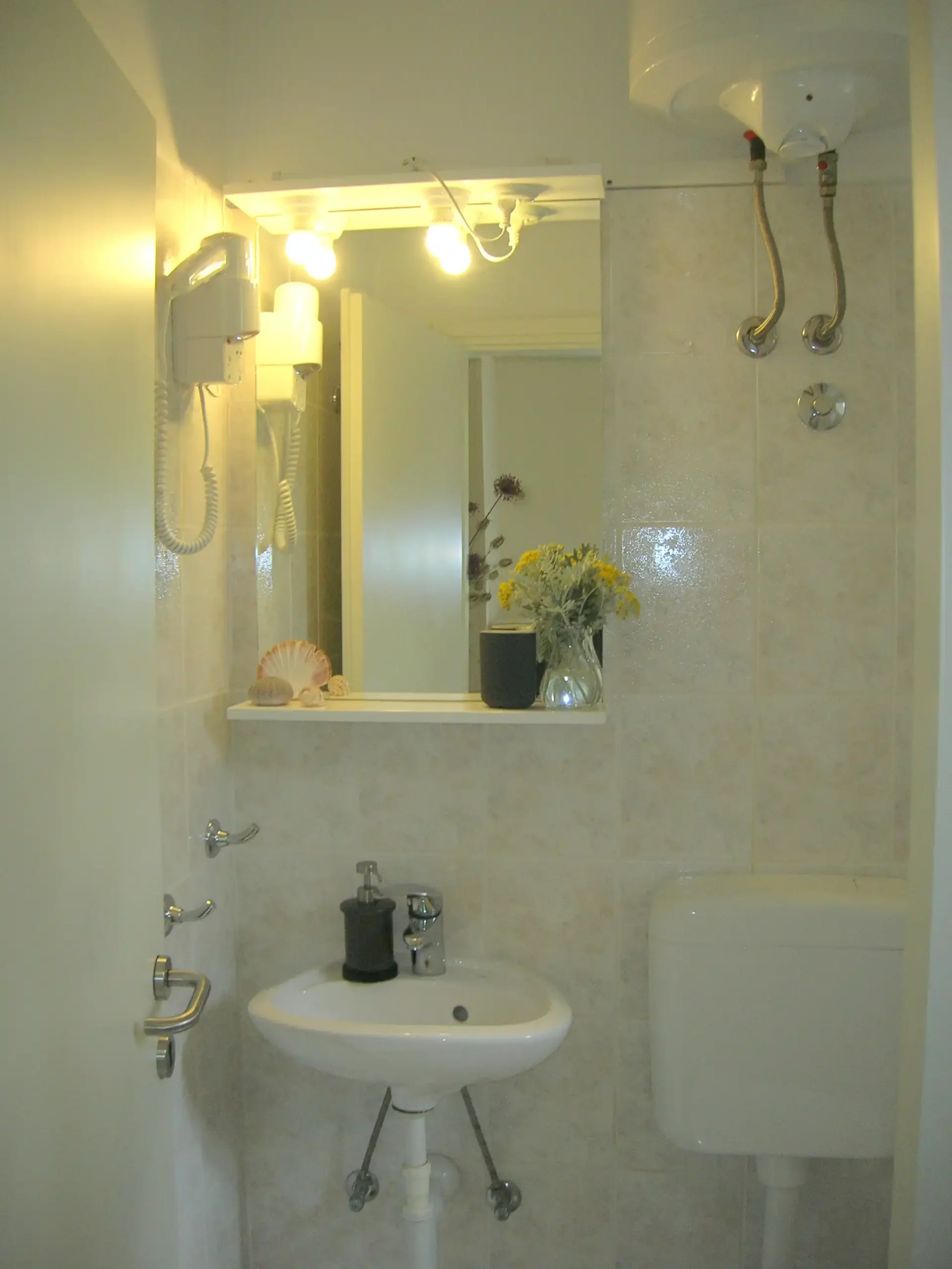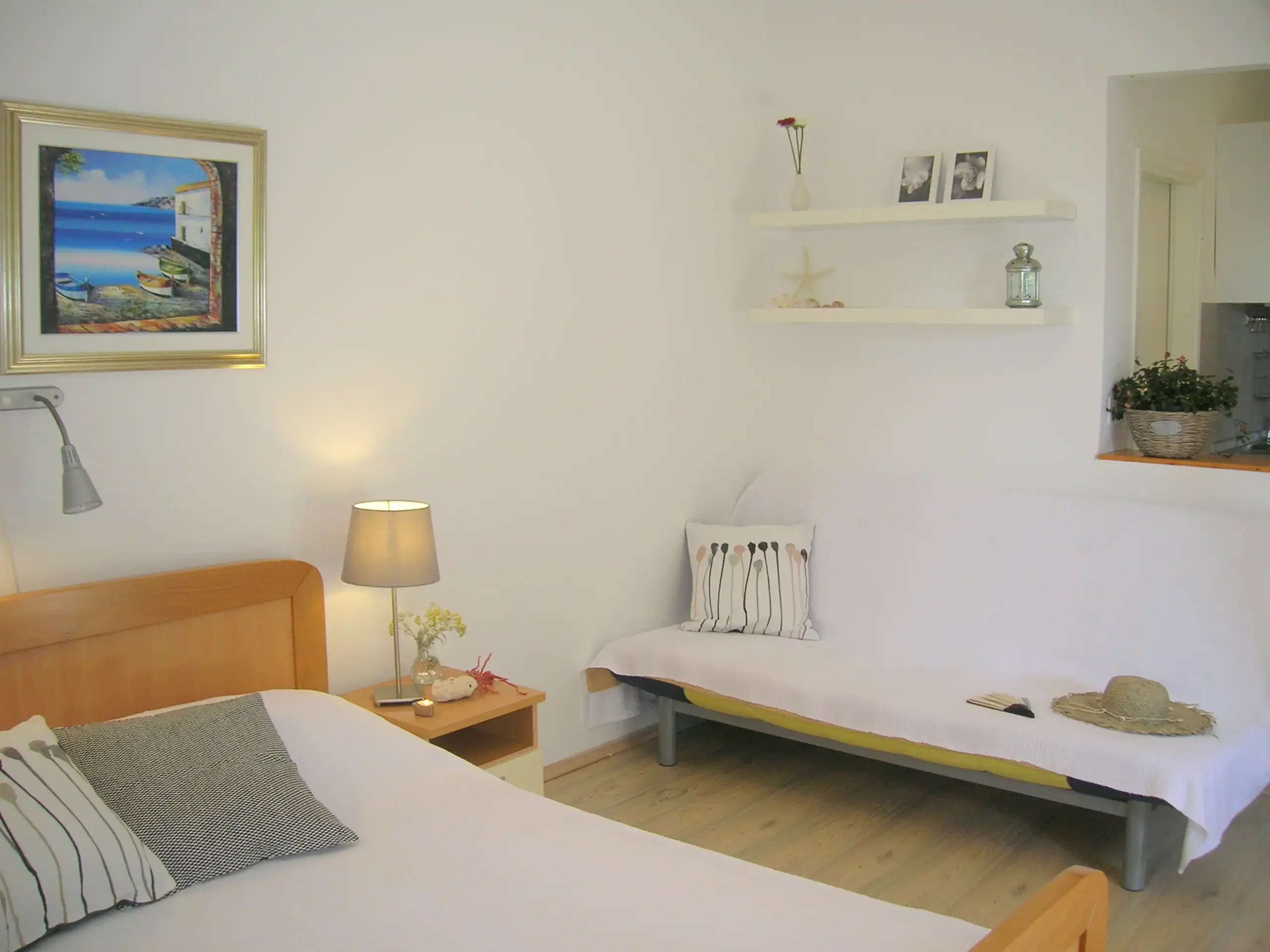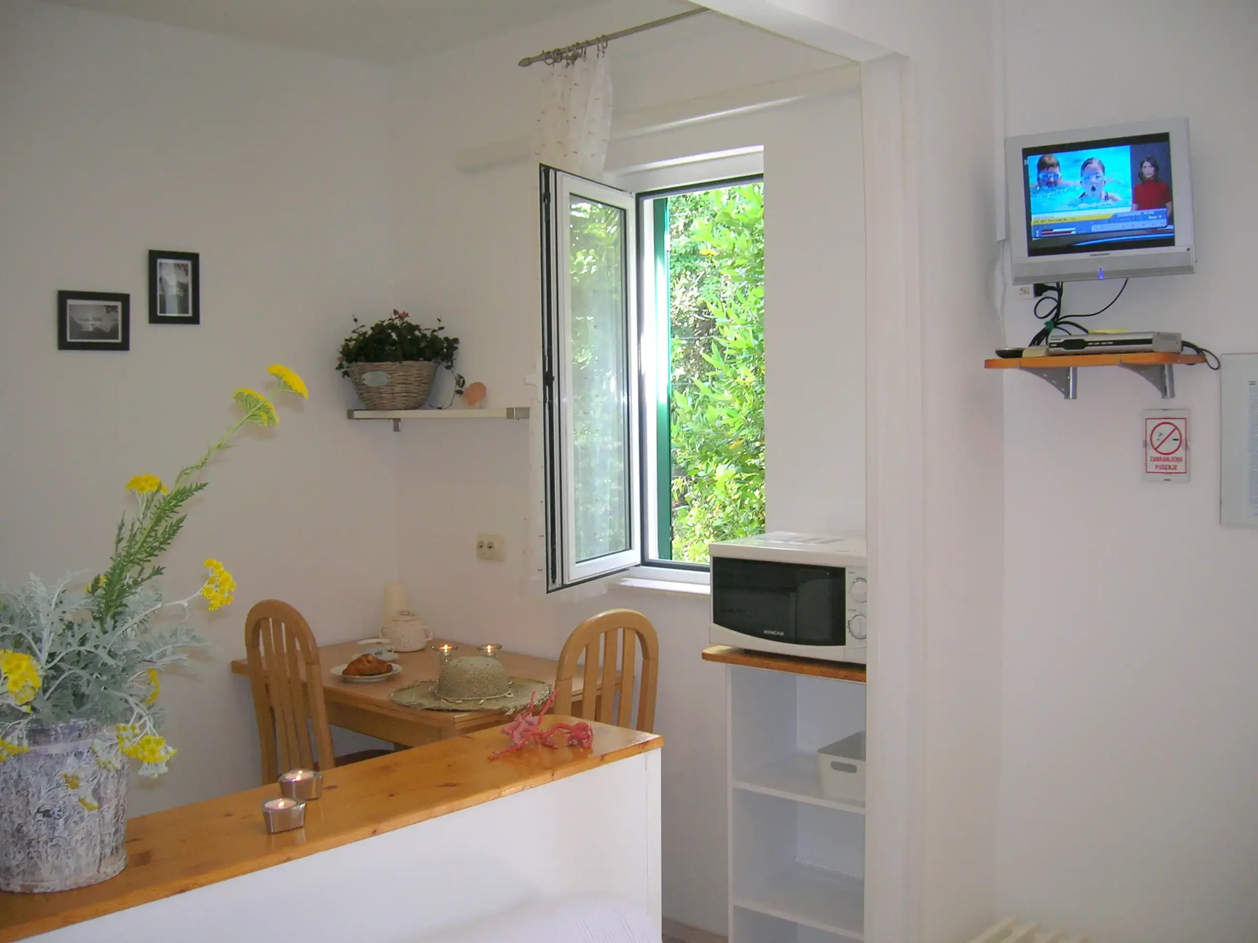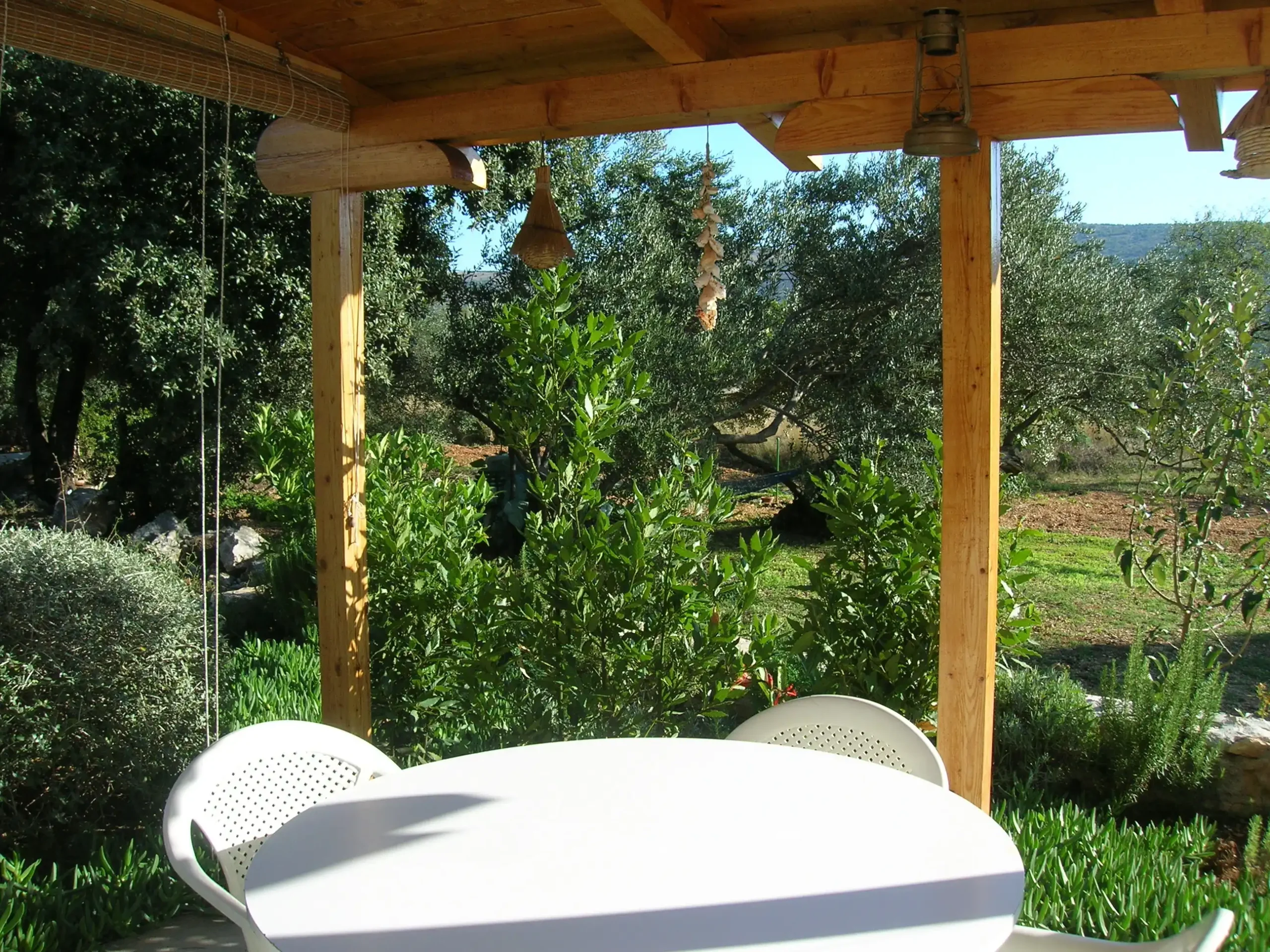 One living room with double bed (1.60×2.00 m) and one pull out couch(1.40×1.90 m ) /Mini kitchen (cooker hob/ refrigerator/microwave/ sink and cooking utensils), Bathroom(shower/wc/sink), Timber porch with table/chair and a huge front garden ( BBC & large table/chairs).